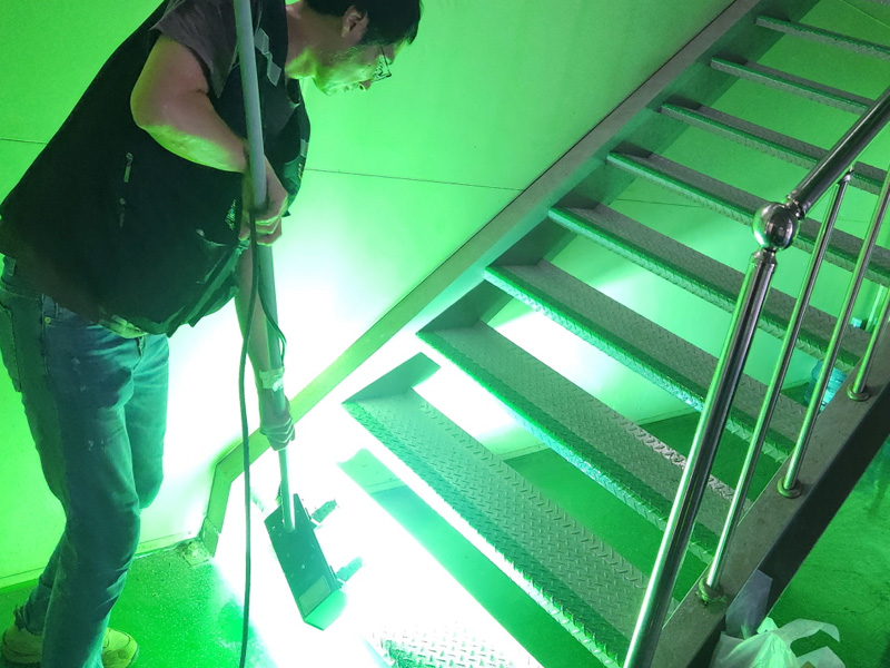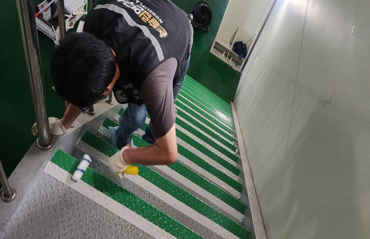 UVÇϵåÄÚÆÃ ½Ã°ø½Ã ¹Ì²ô·³¹æÁö °øµµ¸¦ ³ô¿´À¸¸ç °è´Ü¸é Àüü ¶Ç´Â °£°Ý 5cm, 7cm µî ¿øÇϽô ³Êºñ¿¡ ¸Â°Ô UVÇϵåÄÚÆÃ ½Ã°øÀÌ °¡´ÉÇÕ´Ï´Ù.