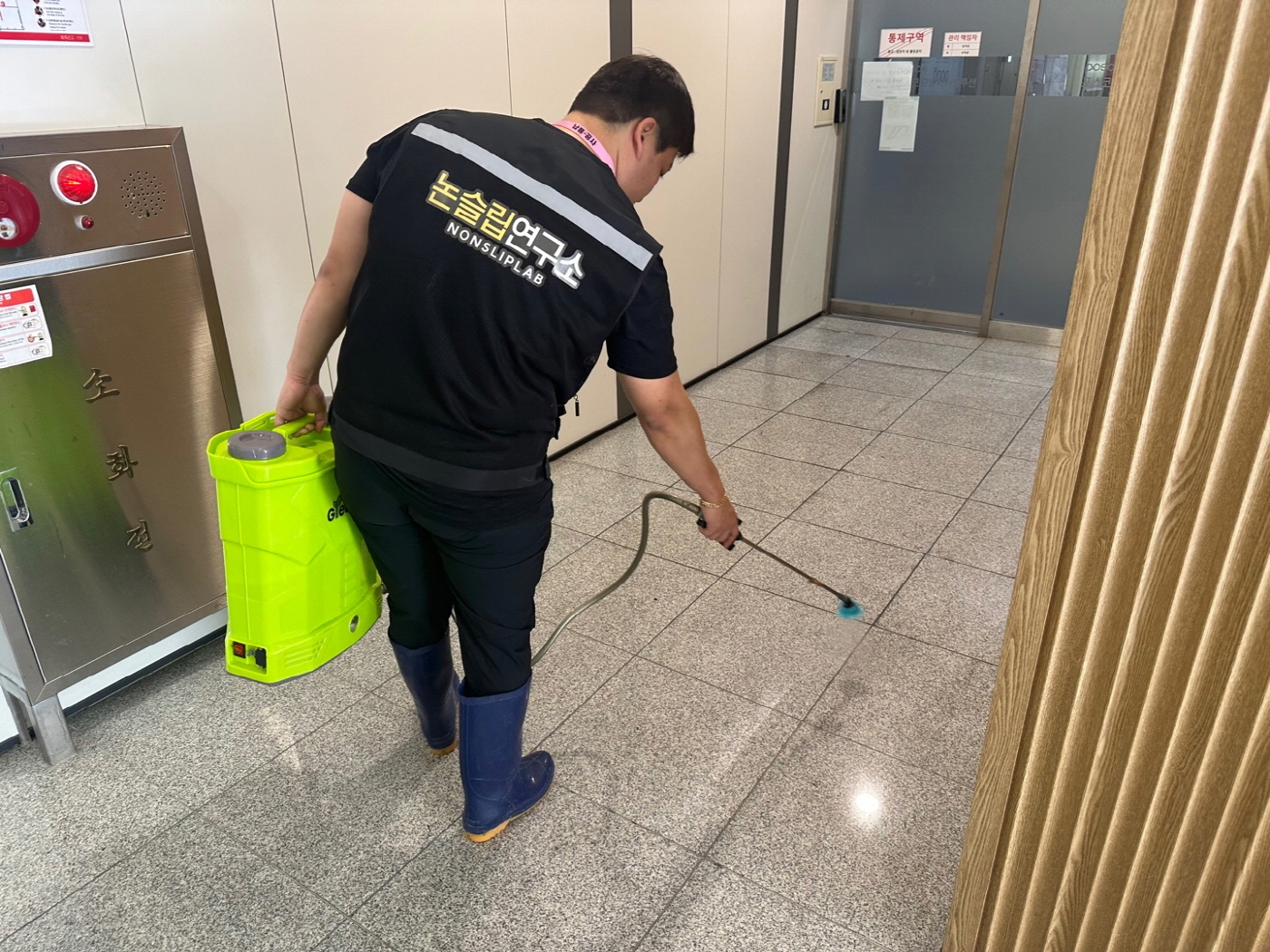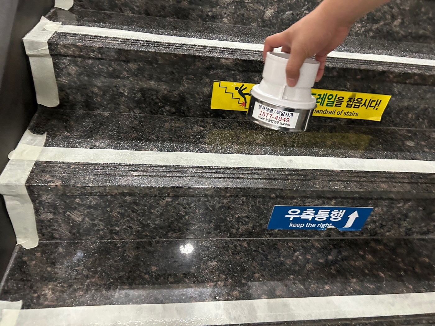 (ÁÖ)Æ÷½ºÄÚ¸ðºô¸®Æ¼¼Ö·ç¼Ç õ¾Èº»»ç Á¶¸³1µ¿ 1¶óÀÎ ´ë¸®¼® °è´Ü Âü, º»»ç ±ÝÇüµ¿ ·Îºñ, º¸¾È½Ç ÀÔ±¸ Æ÷¼¼¸° ŸÀÏ¿¡ ³í½½¸³Á© ½Ã°ø, Á¶¸³1µ¿ 1¶óÀÎ ´ë¸®¼® °è´Ü ³¡ UVÇϵåÄÚÆÃ ½Ã°øÀ» ÁøÇàÇÏ¿´½À´Ï´Ù.