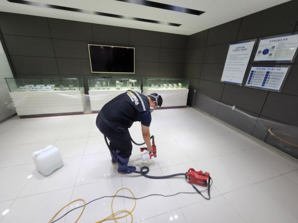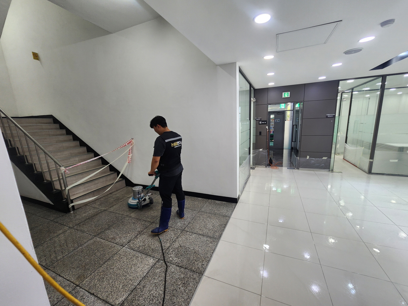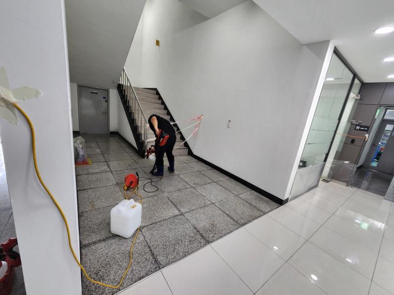 À¯´ÏÅõ½º õ¾È°øÀå ¸ÞÀΠȦ ´ë¸®¼® & Æú¸®½Ì ŸÀÏ, ¼­ºê Ȧ ´ë¸®¼® ¹Ù´Ú, ÈÞ°Ô½Ç ´ë¸®¼® ¹Ù´Ú¿¡ ³í½½¸³Á© ½Ã°øÀ» ÁøÇàÇÏ¿´½À´Ï´Ù.