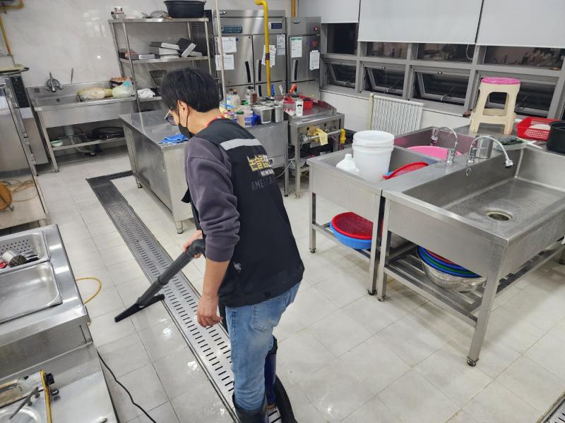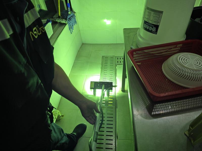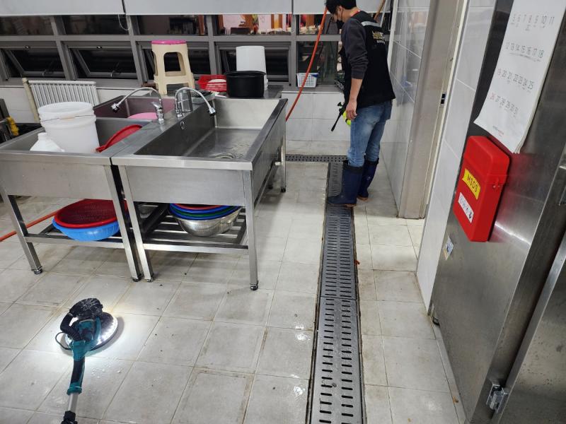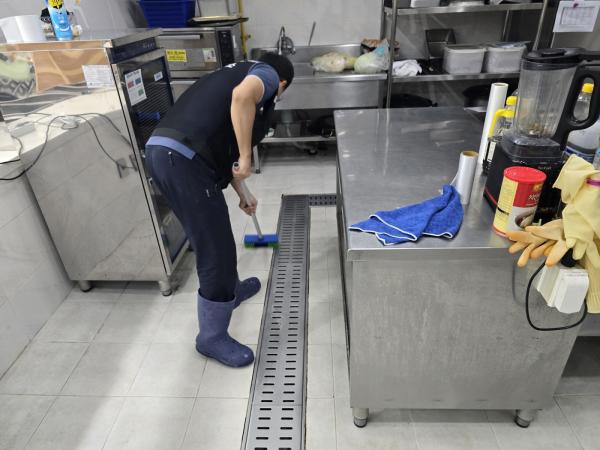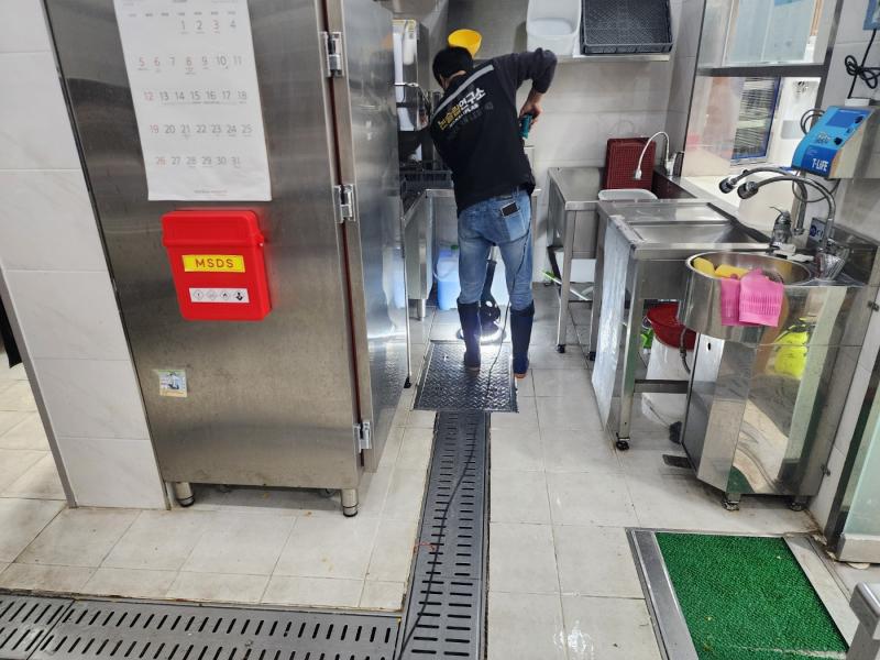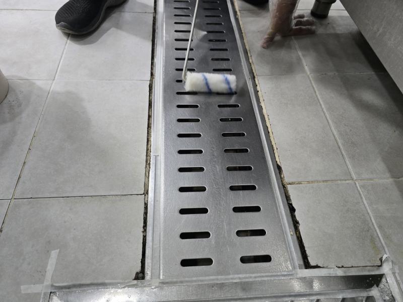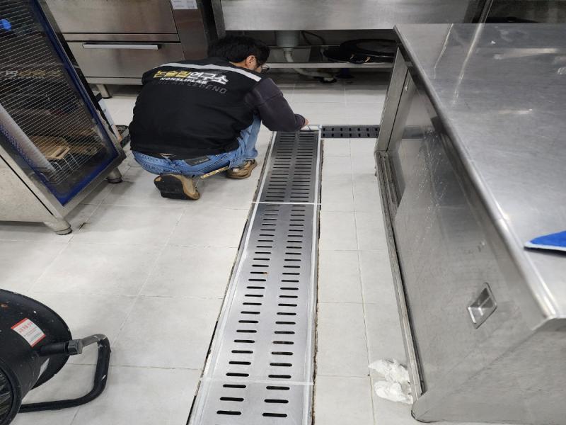 Á÷¿ø ½Ä´ç ³» ÁÖ¹æ ŸÀÏ ¹Ù´Ú, ³í½½¸³Å×ÀÌÇÁ Á¦°Å ÈÄ ³í½½¸³Á© ½Ã°ø, Æ®·£Ä¡´Â UVÇϵåÄÚÆÃ ½Ã°ø