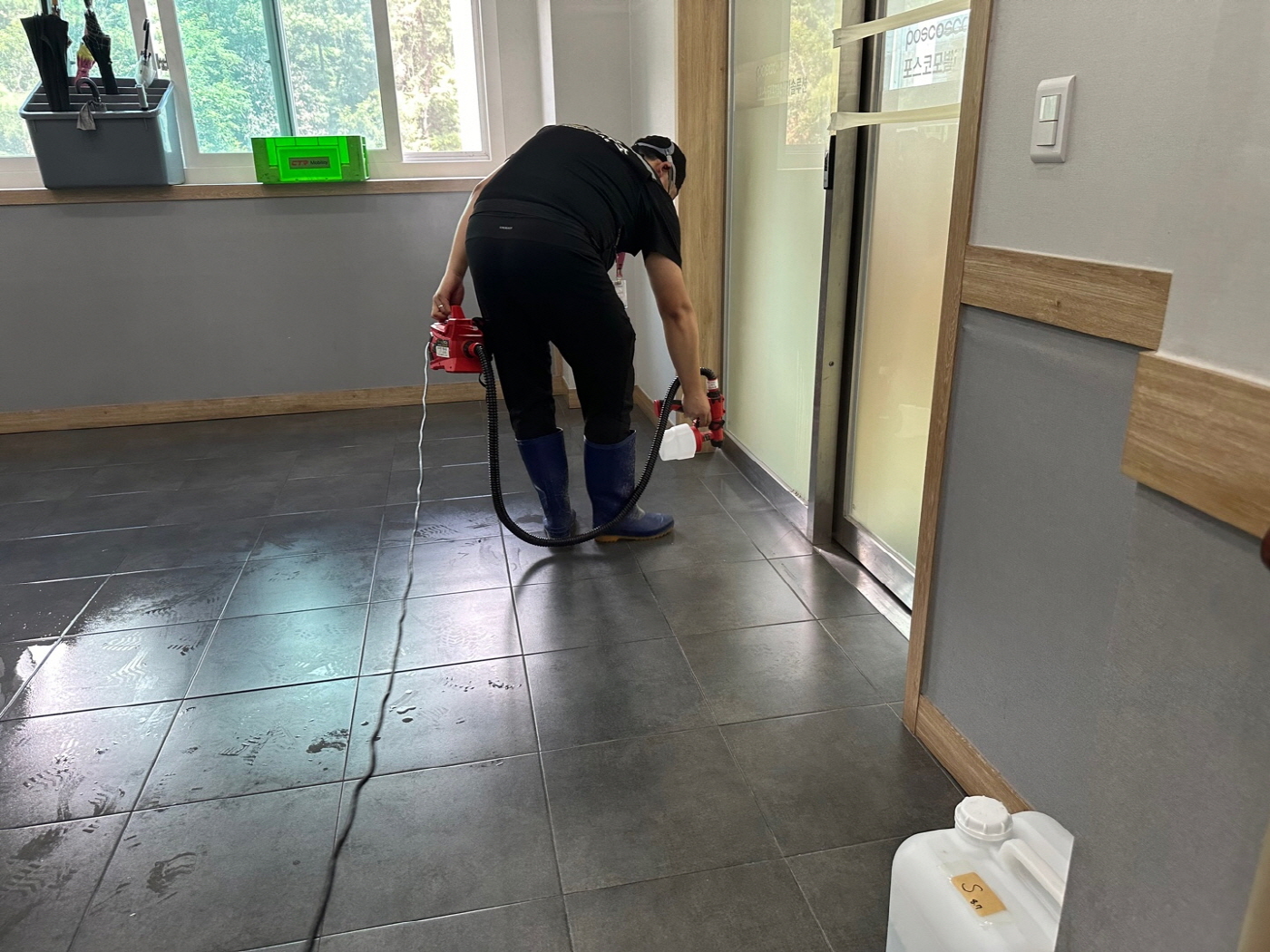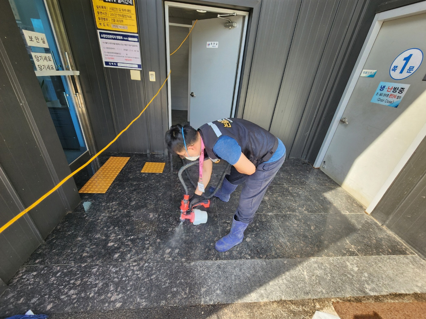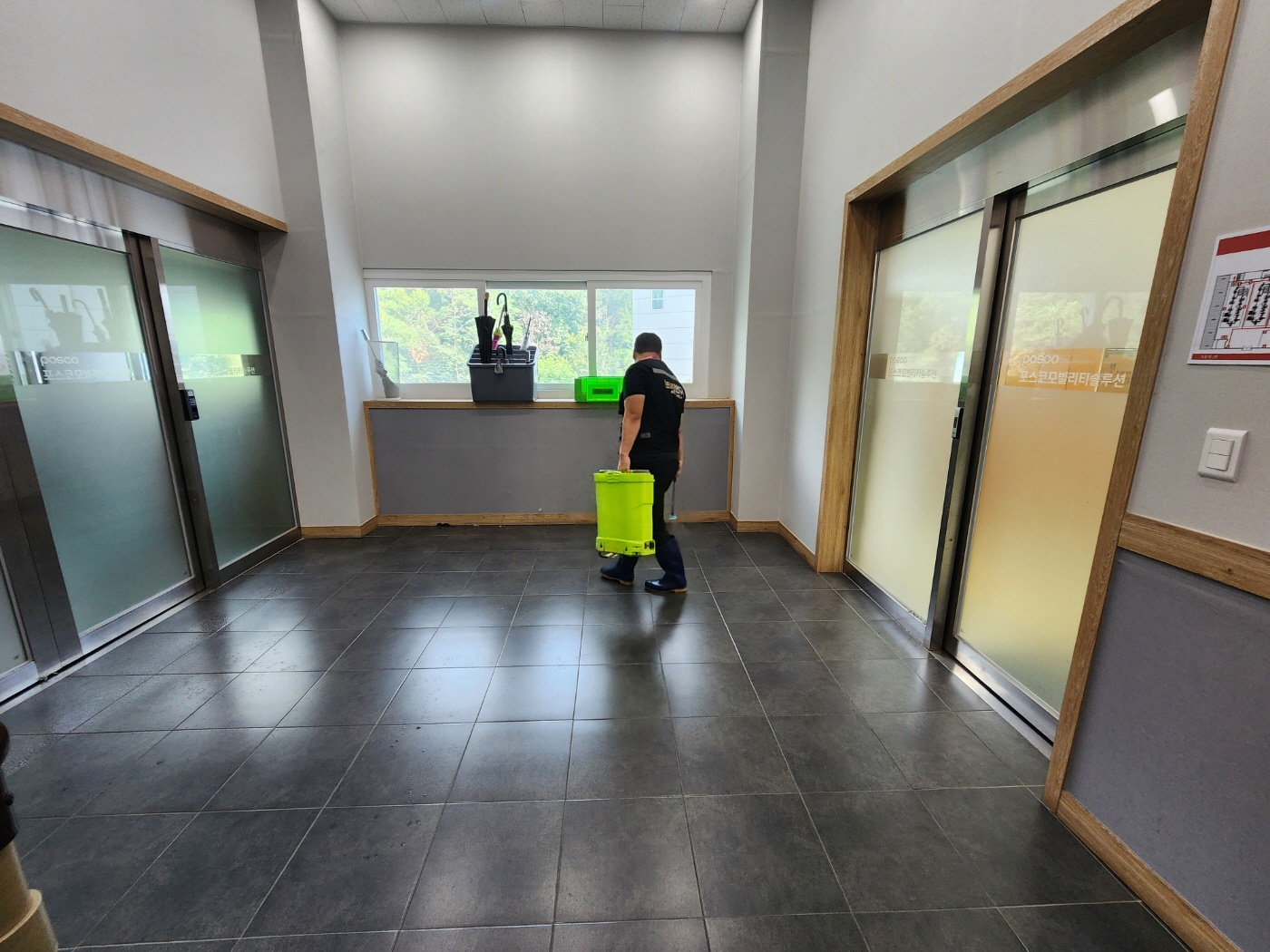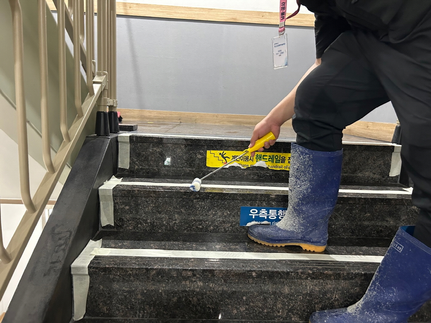 (ÁÖ)Æ÷½ºÄÚ¸ðºô¸®Æ¼¼Ö·ç¼Ç õ¾Èº»»ç Á¶¸³1µ¿ 1¶óÀÎ ´ë¸®¼® °è´Ü Âü, º»»ç ±ÝÇüµ¿ ·Îºñ, º¸¾È½Ç ÀÔ±¸ Æ÷¼¼¸° ŸÀÏ¿¡ ³í½½¸³Á© ½Ã°ø, Á¶¸³1µ¿ 1¶óÀÎ ´ë¸®¼® °è´Ü ³¡ UVÇϵåÄÚÆÃ ½Ã°øÀ» ÁøÇàÇÏ¿´½À´Ï´Ù.