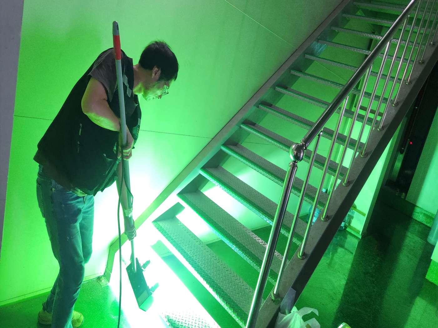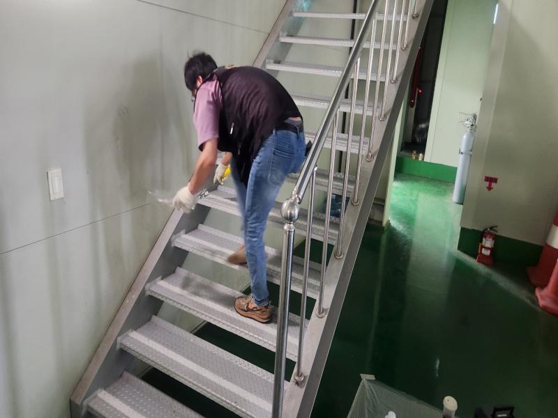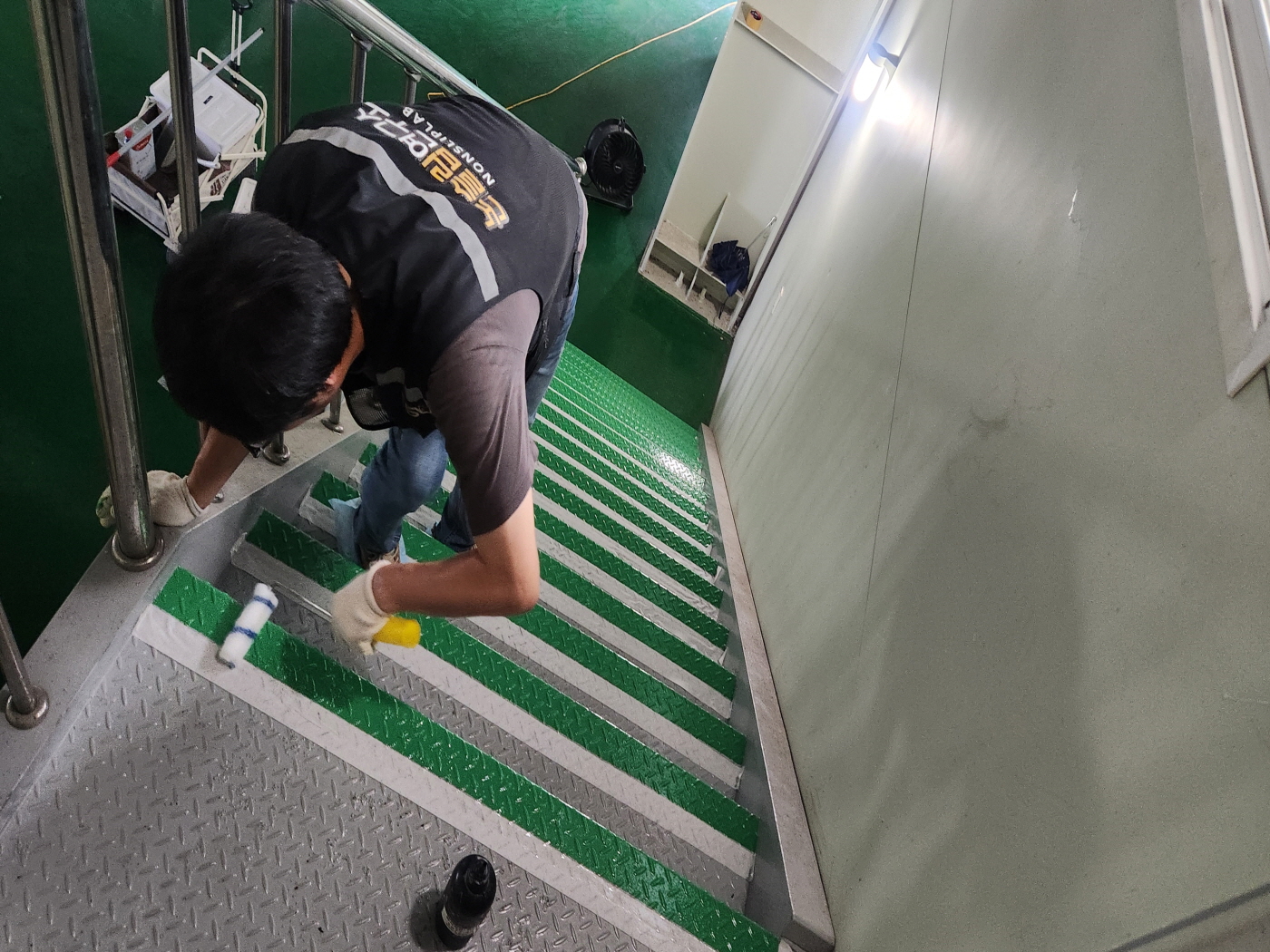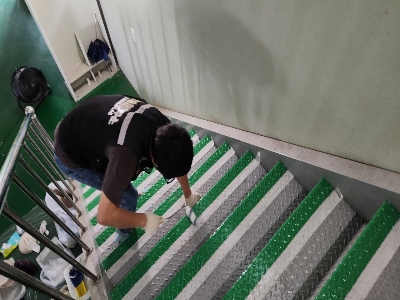 ÃæºÏ õ¾È½Ã¿¡ À§Ä¡ÇÑ HDÇö´ë¿ÀÀϹðÅ© õ¾È»ç¾÷Àå °ÝÀÚ¹«´Ì ½ºÆ¿ °è´Ü¿¡ µµÀå ÀÛ¾÷°ú UVÇϵåÄÚÆÃ ½Ã°øÀ» ÁøÇàÇÏ¿´½À´Ï´Ù.