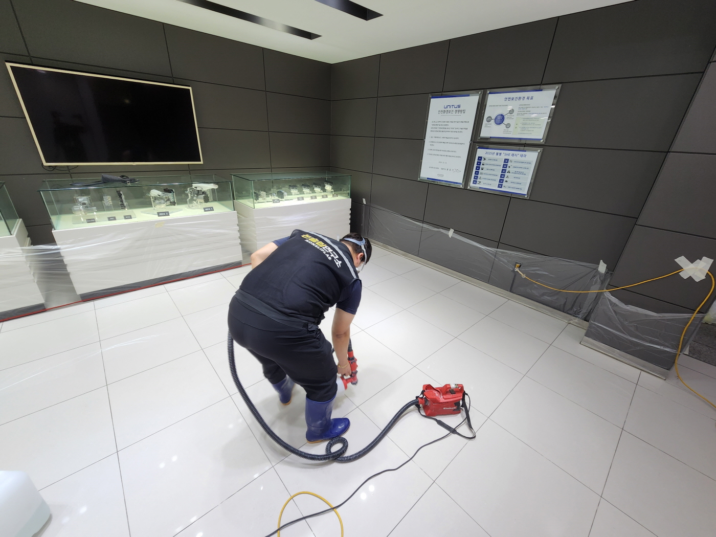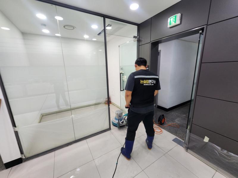 À¯´ÏÅõ½º õ¾È°øÀå ¸ÞÀΠȦ ´ë¸®¼® & Æú¸®½Ì ŸÀÏ, ¼­ºê Ȧ ´ë¸®¼® ¹Ù´Ú, ÈÞ°Ô½Ç ´ë¸®¼® ¹Ù´Ú¿¡ ³í½½¸³Á© ½Ã°øÀ» ÁøÇàÇÏ¿´½À´Ï´Ù.