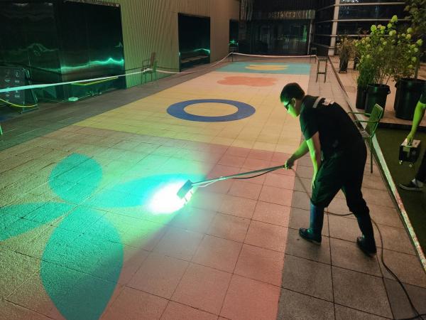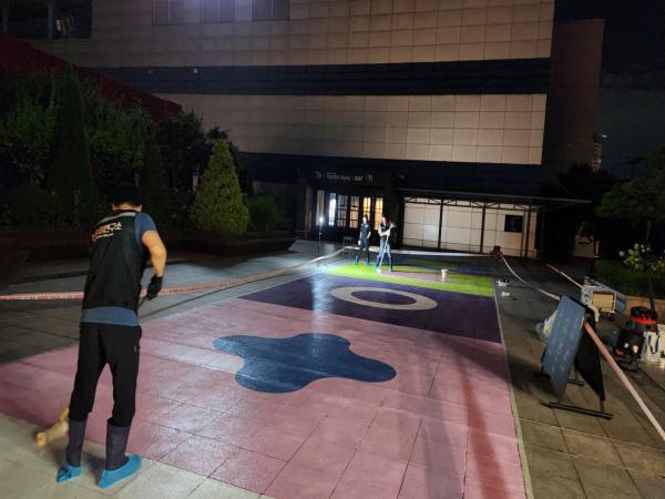 ¼­¿ï½Ã ¿ë»ê¿ª¿¡ À§Ä¡ÇÑ ¾ÆÀÌÆÄÅ©¸ô ¿ë»êÁ¡ 7Ãþ ·çÇÁž¿¡ UVÇϵåÄÚÆÃ ½Ã°øÀ» ÁøÇàÇÏ¿´½À´Ï´Ù.