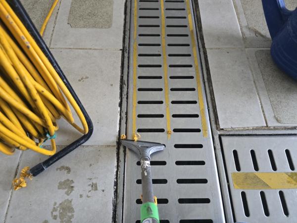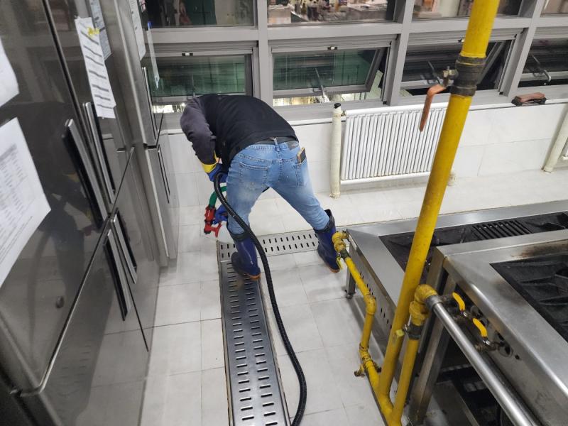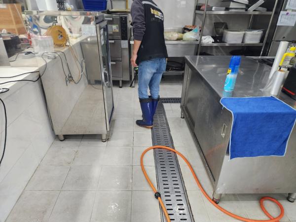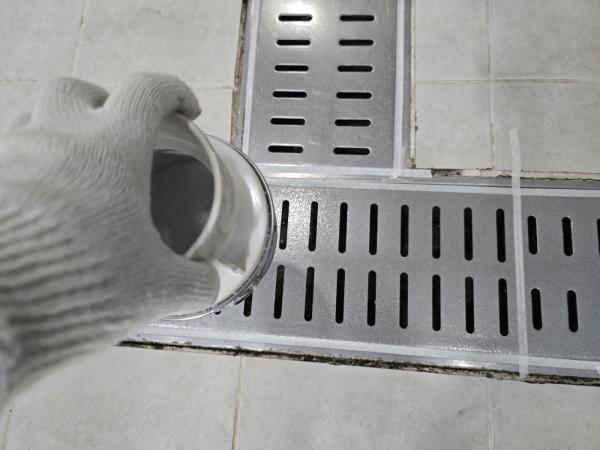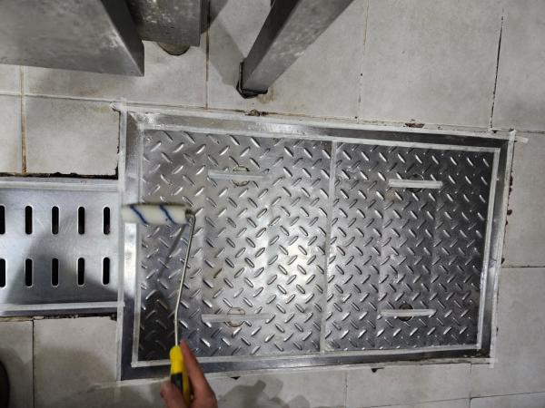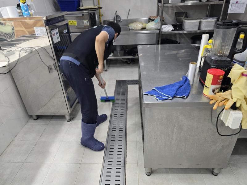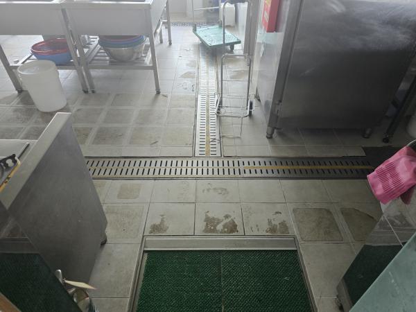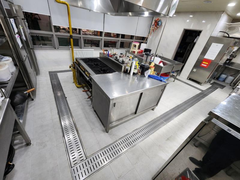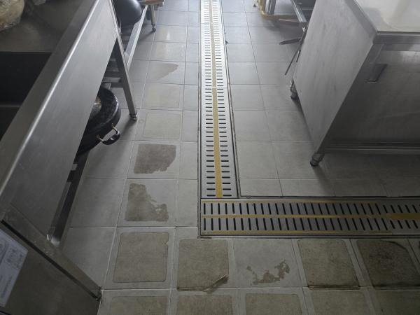 Á÷¿ø ½Ä´ç ³» ÁÖ¹æ ŸÀÏ ¹Ù´Ú, ³í½½¸³Å×ÀÌÇÁ Á¦°Å ÈÄ ³í½½¸³Á© ½Ã°ø, Æ®·£Ä¡´Â UVÇϵåÄÚÆÃ ½Ã°ø